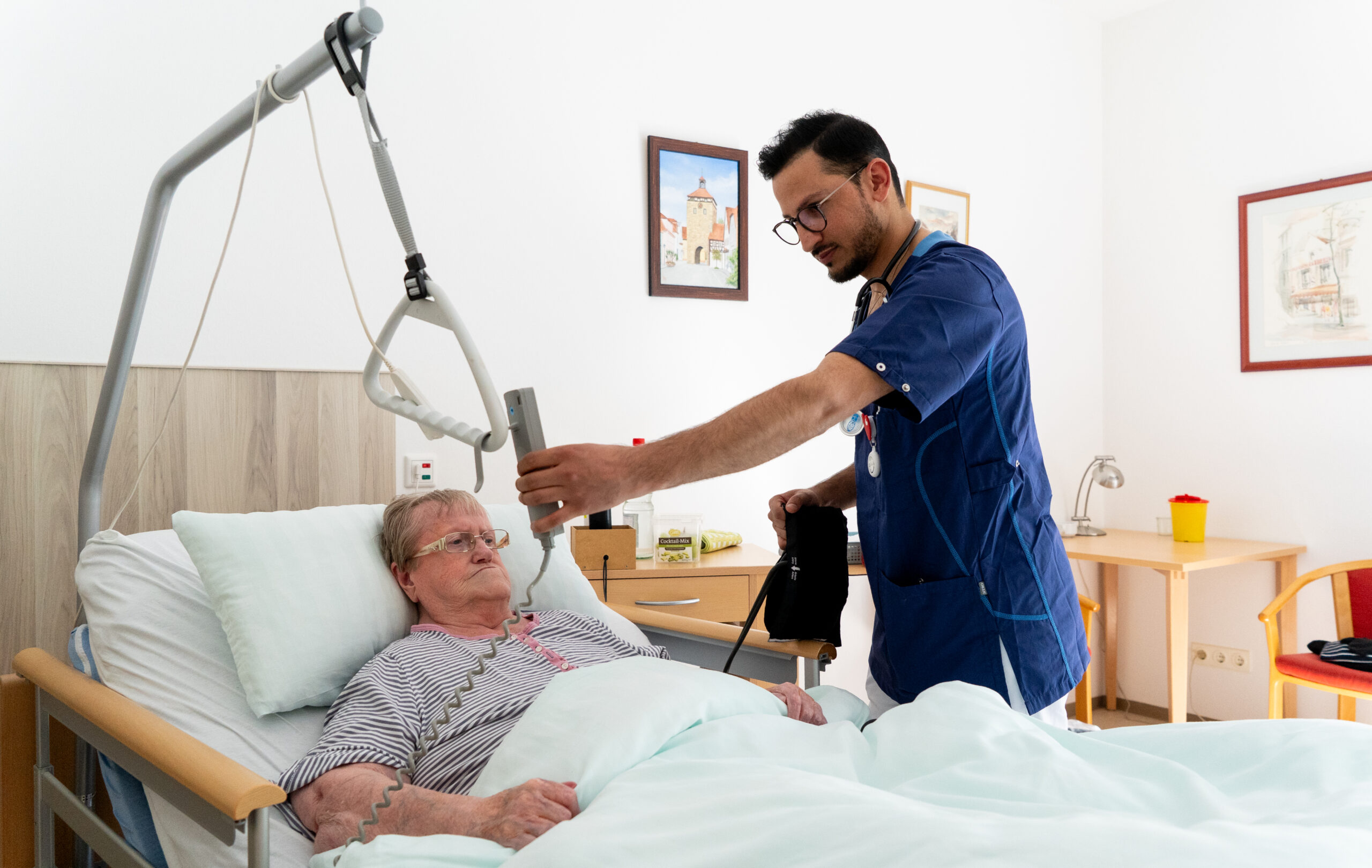 Ziel unserer Arbeit ist es, die Wünsche und Bedürfnisse unserer Bewohner zu erkennen, zu respektieren und in unserer täglichen Arbeit zu verwirklichen. Hierfür stehen uns modernste pflegerische Hilfsmittel zur Verfügung.